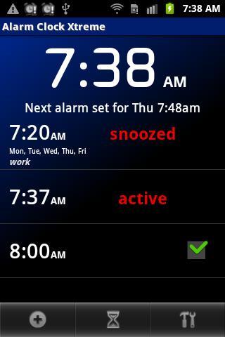 Alarm Clock Xtreme Free, gelişmiş özellikleri ile dikkat çeken bir alarm uygulaması. Uygulamanın ana ekranında alarm ekleyebileceğiniz, zamanlayıcı ayarlayabileceğiniz ve ayarlara girebileceğiniz üç ikon bulunuyor. Uygulamaya istediğiniz kadar alarm ekleyebilirsiniz, bu alarmları hafta içi – hafta sonu gibi gruplara ayırabilirsiniz.