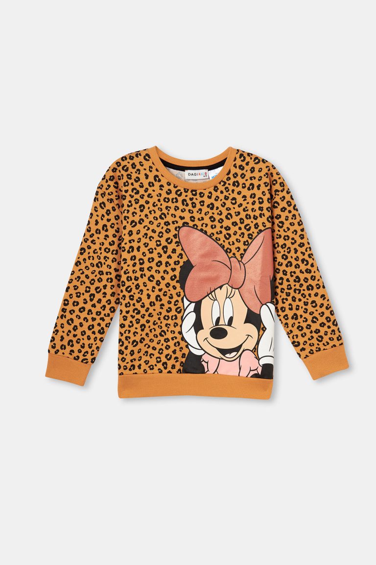 Kız Çocuk Bej Minnie Mouse Baskılı Lisanslı Pamuk Swearshirt