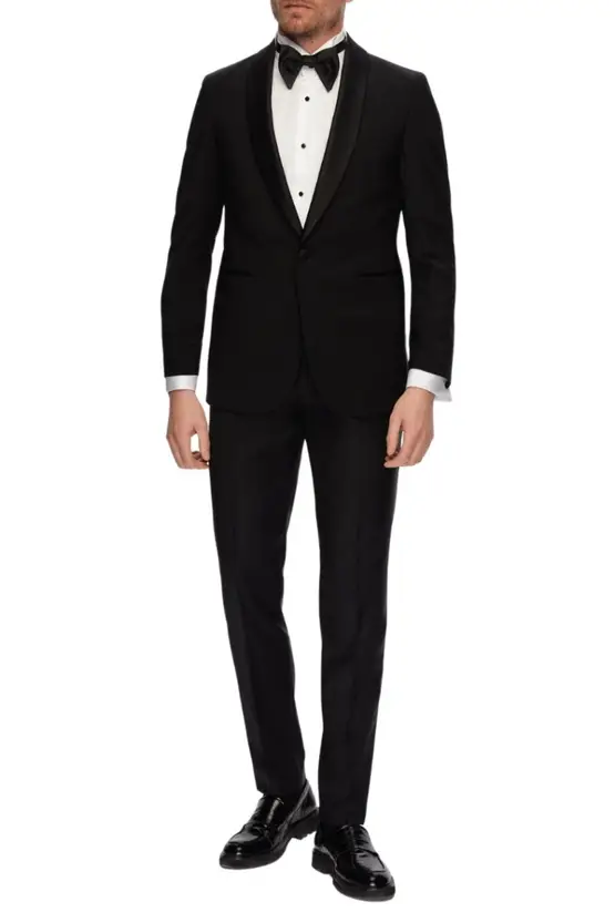 Smokin tarzında tasarlanan Damat Tween Damat ceremony takım elbise ceket ve pantolondan oluşuyor. Ceketin şal yaka tasarımı öne çıkarken saten detaylarla süslenmesi zarif hava katıyor. Ön tarafında cepler kullanışlılık sağlıyor. Takımın ceketi tek düğmeli tasarıma sahip bu da modern görünüm kazandırıyor.