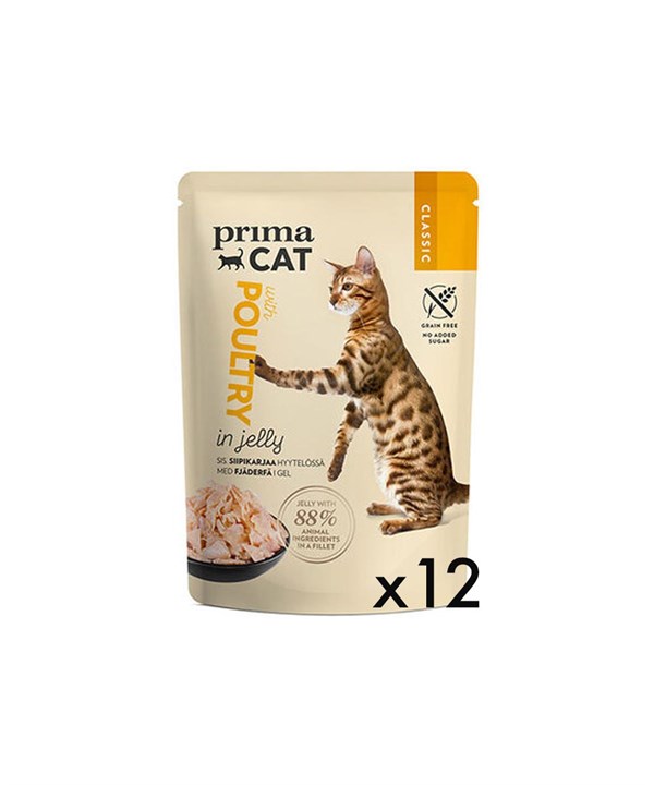 Primacat Pouch Classic Jöle İçinde Kümes Hayvanlı Tahılsız Kedi Yaş Maması 12 Adet X 85 Gr