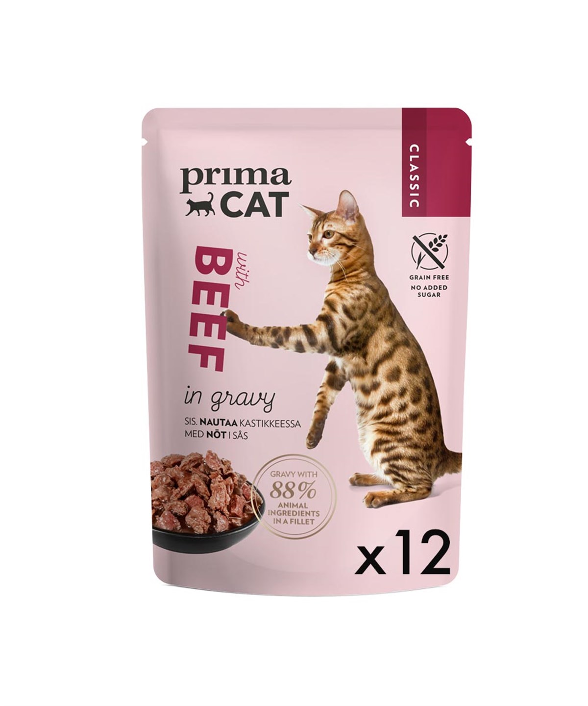 Primacat Classic Pouch Jöle İçinde Dana Etli Tahılsız Kedi Yaş Maması 12 Adet X 85 Gr