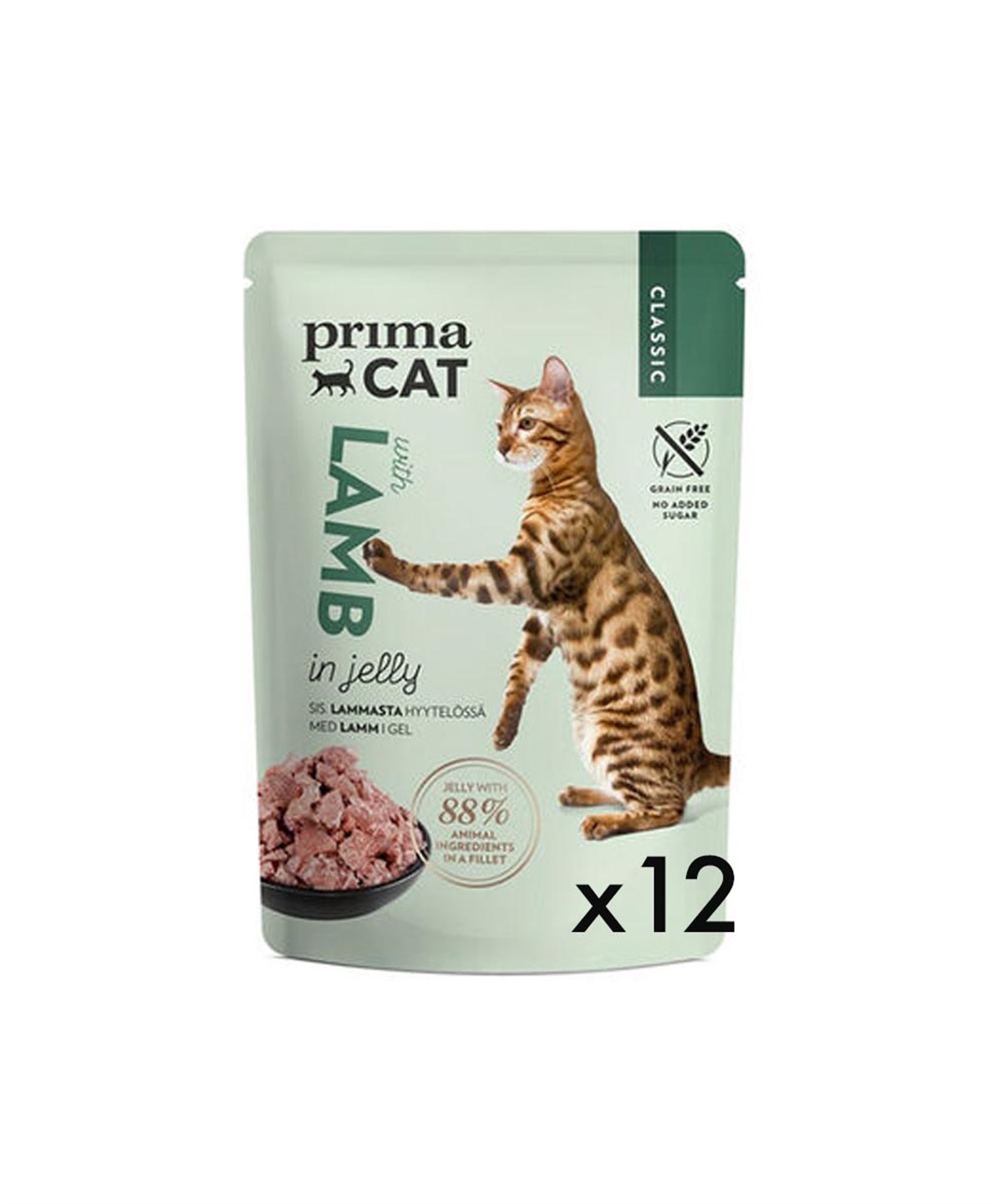 Primacat Classic Pouch Jöle İçinde Kuzu Etli Tahılsız Kedi Yaş Maması 12 Adet X 85 Gr