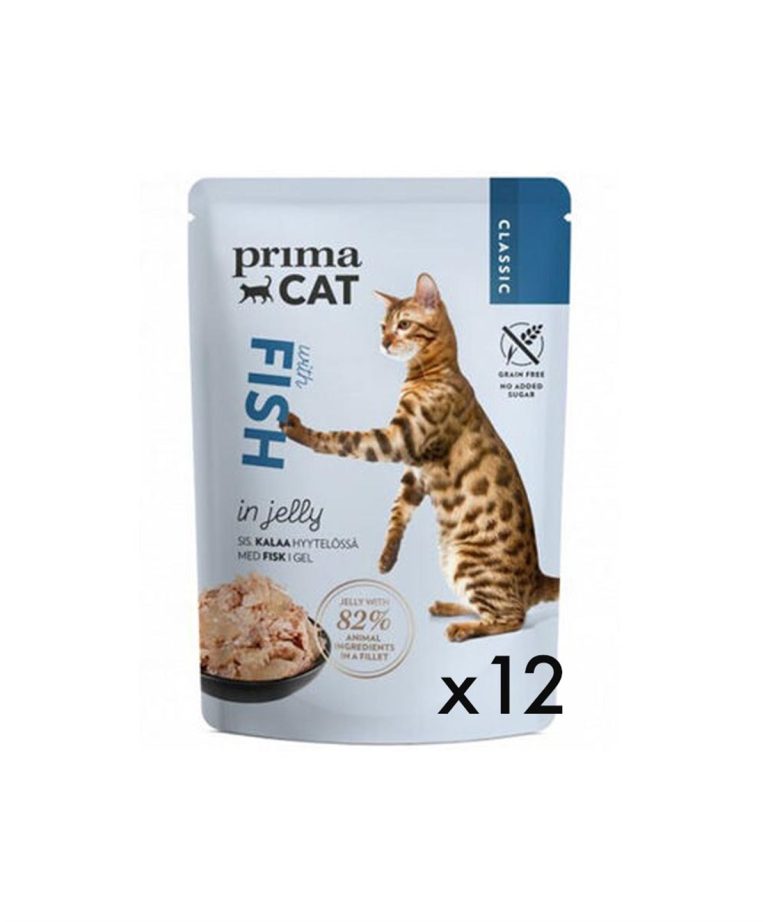 PrimaCat Pouch Classic Jöle İçinde Balıklı Tahılsız Kedi Yaş Maması 12 Adet x 85 gr, yoğun su bulunan üründür. İçeriğinde balıklı tahılsız mama bulunuyor. Özelliklee içinde balıklı tahılsız mama seven kediler için harika bir lezzettir. Kediniz çok fazla su tüketimyorsa, alışkanlığını böylelikle kısa bir sürede kazandırabilirsiniz.