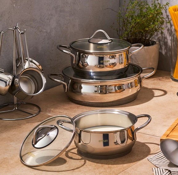 Evlerin her zaman ihtiyaç duyulan mutfak eşyalarından olan tencereleri de çeyiz setleriyle alabilirsiniz. Ya da set almada sadece tencere takımını seçersiniz. Andora 15 parça çelik çeyiz seti 2 yıl garantili olarak satıştadır. İndüksiyon kullanımı olan ürün üç adet farklı ebatlarda derin tencere, pilav tenceresi, cezve takımı ve çaydanlık takımından meydana gelir. Günlük kullanım için evinize ya da çeyiz hazırlığına alabilirsiniz.