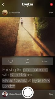 EyeEm benzer zevklere sahip insanların çektikleri fotoğraflar aracılığıyla bir araya gelmelerini sağlayan ücretsiz bir fotoğraf paylaşımı ve sosyal keşif uygulamasıdır. Her anı ölümsüzleştirin. Fotoğraflarınızı 17 farklı fotoğraf filtresiyle güzelleştirin ve onları EyeEm komünitesi ile birlikte dilediğiniz sosyal ağlarda paylaşın. Yeni başlıkları ve ziyaret ettiğini yerleri keşfedin.