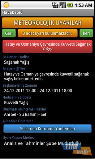 Bu sayede yaşadığınız ilin hava durumunu da görebilirsiniz. Resimlerden de gördüğünüz gibi hava durumu detaylıca görünüyor. Detaylara bakarak daha çok bilgiye ulaşmanız mümkün. Zaten kullanışlı olan Hava Durumu uygulamasının gelecek özelliklerle çok daha kullanışlı olacağını tahmin etmek zor değil. Geliştiriciye görüş ve önerileriniz için iletişm bilgilerinden ulaşabilirsiniz.