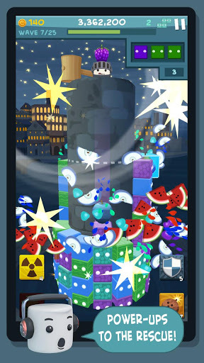 Rise of The Blobs’un oyun içi ekranına baktığımızda, sol üstte oyun paralarını, üst ortada puanımızı görüyoruz. Onların altında kaçıncı dalgada olduğumuz ve tehlike çubuğu var. Yok edemediğiniz küpler yukarı çıktıkça tehlike çubuğu kırmızıya doğru ilerliyor.