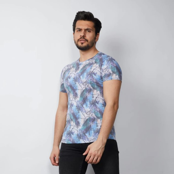 Palmiye Desenli Turkuaz Bisiklet Yaka T-Shırt, turkuaz renge sahiptir. Ürünün başka renk yelpazesi bulunmamaktadır. Ancak ürün; turkuaz, mavi, beyaz ve hoş desenleri ile birçok kombin yapılabilecek şekilde imal edilmiştir. Malzemesi polyester yapıda olup, siz ya da sevdiklerinizin üzerinizde hoş bir görünüm kazandırır.