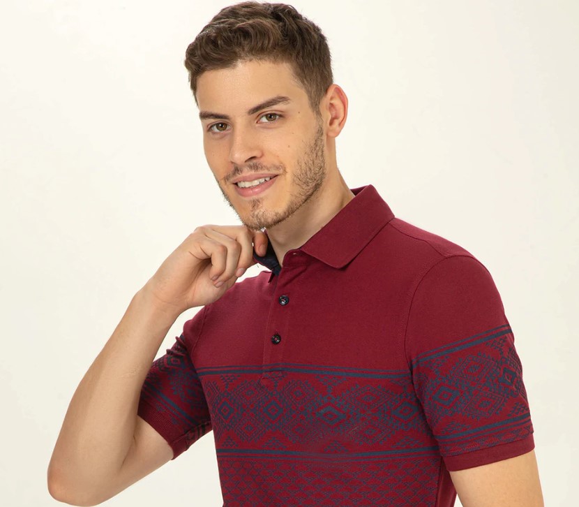 Etnik Desenli Polo Yaka T-Shırt, göğüs kısmında ve alt kısmında 2 ayrı model etnik desen içerir. Ürün tamamı tek renk olup bu desenler ise farklı tonlarda çizgi ve şekillerden oluşur. İncelenen ürün bordo renge sahiptir. Ancak 10 11 farklı renk çeşidi ile yine istediğiniz model ve renkte seçim yapma şansını siz değerli müşterisinde saklı tutar. %96 cotton malzeme ile imal edilmiş olup kalan %5lik kısım ise elasik yapıdadır. Bu sayede ürün hem esnek hem de kaliteli bir kumaş yapısındadır, denilebilir.